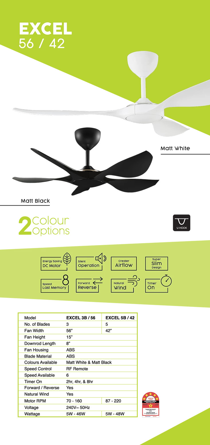 ALPHA EXCEL 3B/56 MATT BLK 56″ CEILING FAN DC MOTOR WITH REMOTE