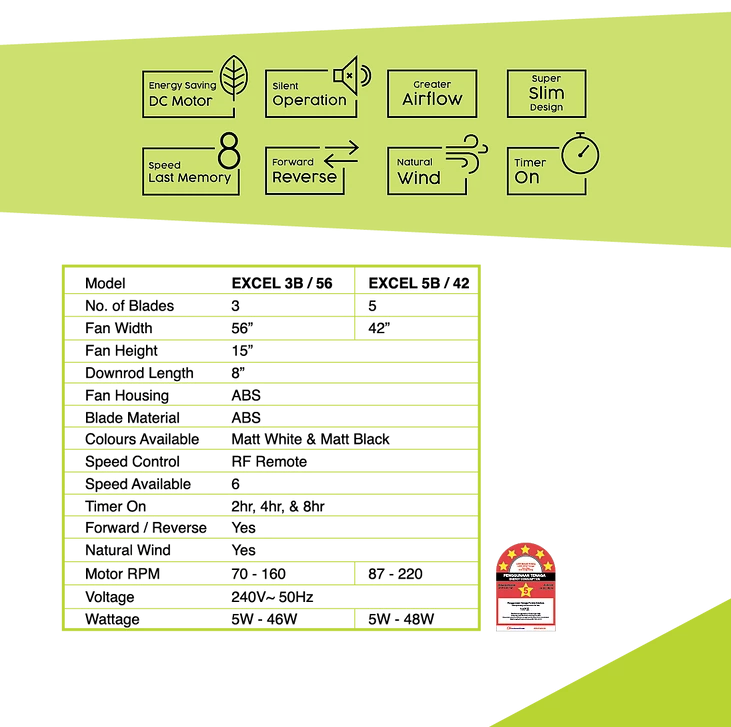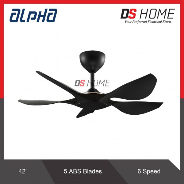 ALPHA EXCEL 5B/42 MATTE BLACK 42″ CEILING FAN DC MOTOR WITH REMOTE